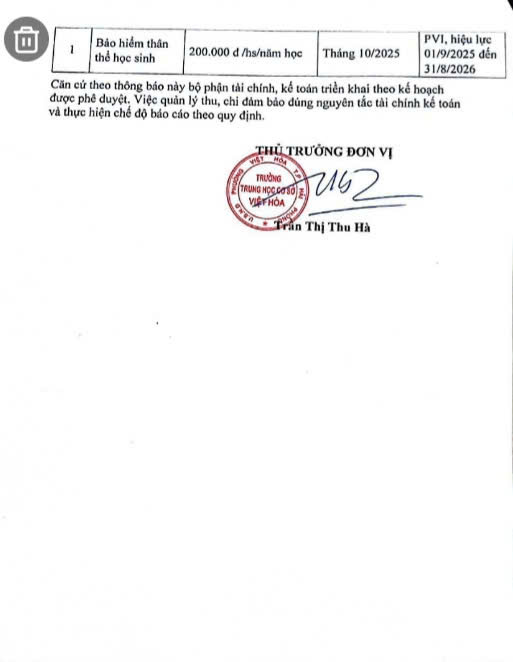 Quyết định công khai các khoản thu đầu năm + thông báo thu góp năm học 2024-2025 trường THCS Việt Hòa ...